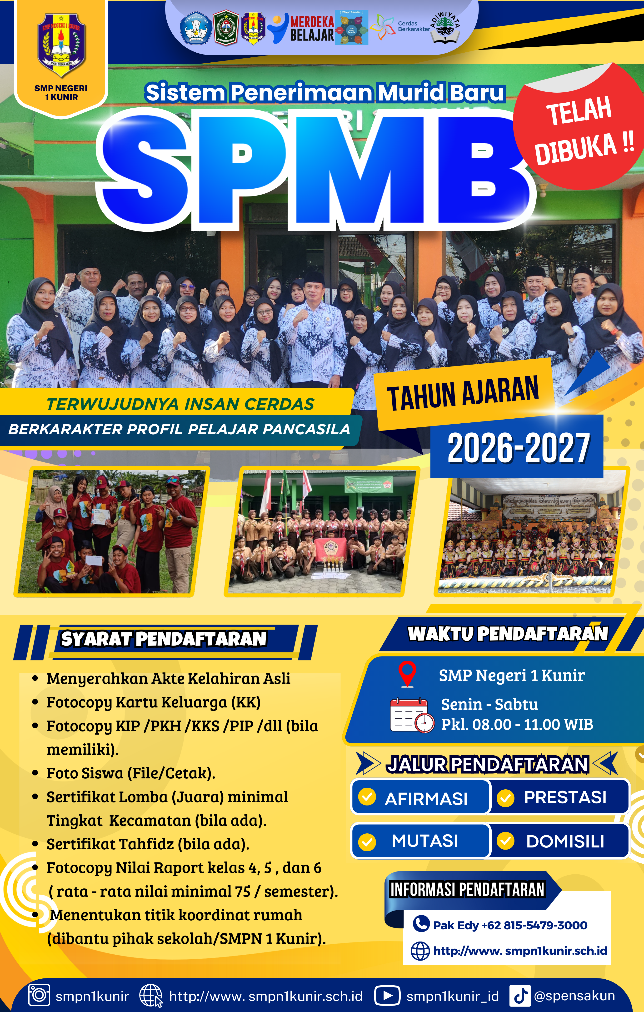 Sistem Penerimaan Murid Baru (SPMB) SMP Negeri 1 Kunir TP. 2026/2027
